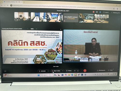 นางอำพร ศรีกุลนิภา พัฒนาการอำเภอบางปะกง พร้อมด้วยเจ้าหน้าที่พัฒนาชุมชนอำเภอบางปะกง ร่วมประชุมขับเคลื่อนกิจกรรมตามแผนปฏิบัติราชการของสำนักเสริมสร้างความเข้มแข็งชุมชน ประจำปีงบประมาณ 2569 คลินิก สสช. ผ่านระบบอิเล็กทรอนิกส์ (Cisco Webex Meetings)